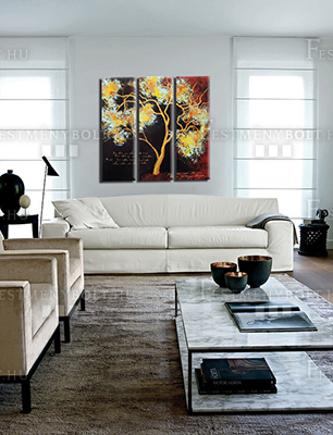 A kézzel festett fás faliképek a formák és színek varázslatos világába vezetnek be bennünket, utalnak az egyéni életút kibontakozására, az életünkkel összekapcsolható párhuzamokra. E falikép a tökéletes választás azoknak, akik a mozgalmas, kimerítő munkájuk után otthonukban szeretnének kikapcsolódni, hiszen ezeka festmények az önismereti szimbólummal lehetőséget adnak a szabad asszociációra.